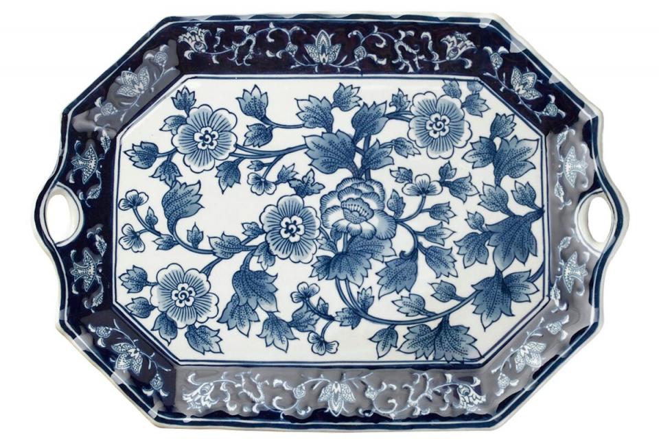 Trays & Boxes | Decor One Kings Lane 19″ Handled Floral Platter, Blue/White