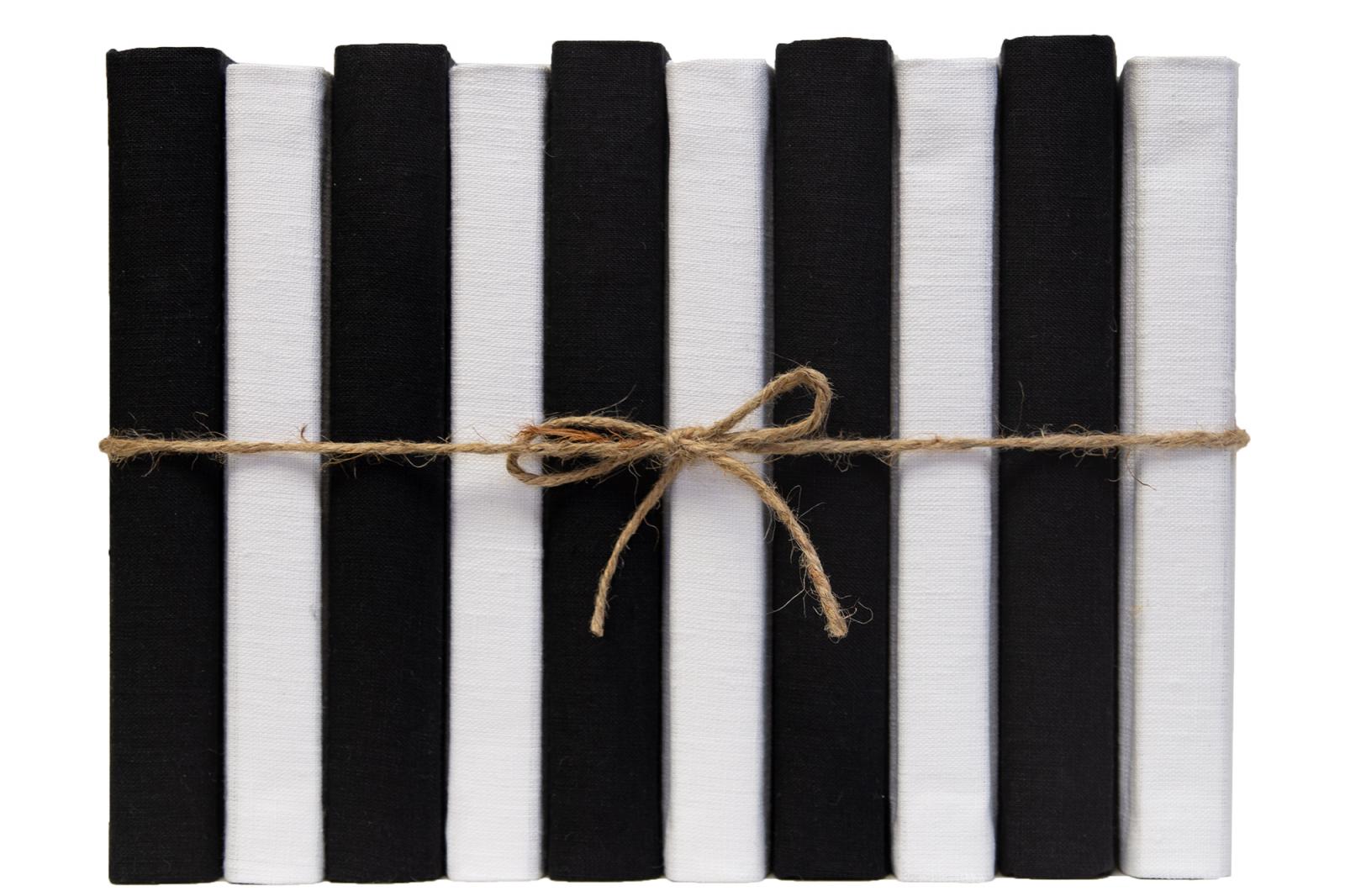 Transform your space with our Paino Linen Wrapped ColorPak from Booth and Williams. One linear foot of authentic modern hardback books hand wrapped in varied shades of black and white Linen Fabric that is precisely attached to each individual book’s cover. Contains 7-12 books with an average height of 9.5-10” and hand-wrapped in jute twine. Order as many ColorPaks as needed to complete your project.Made to order-allow 3-5 business days before shipment.