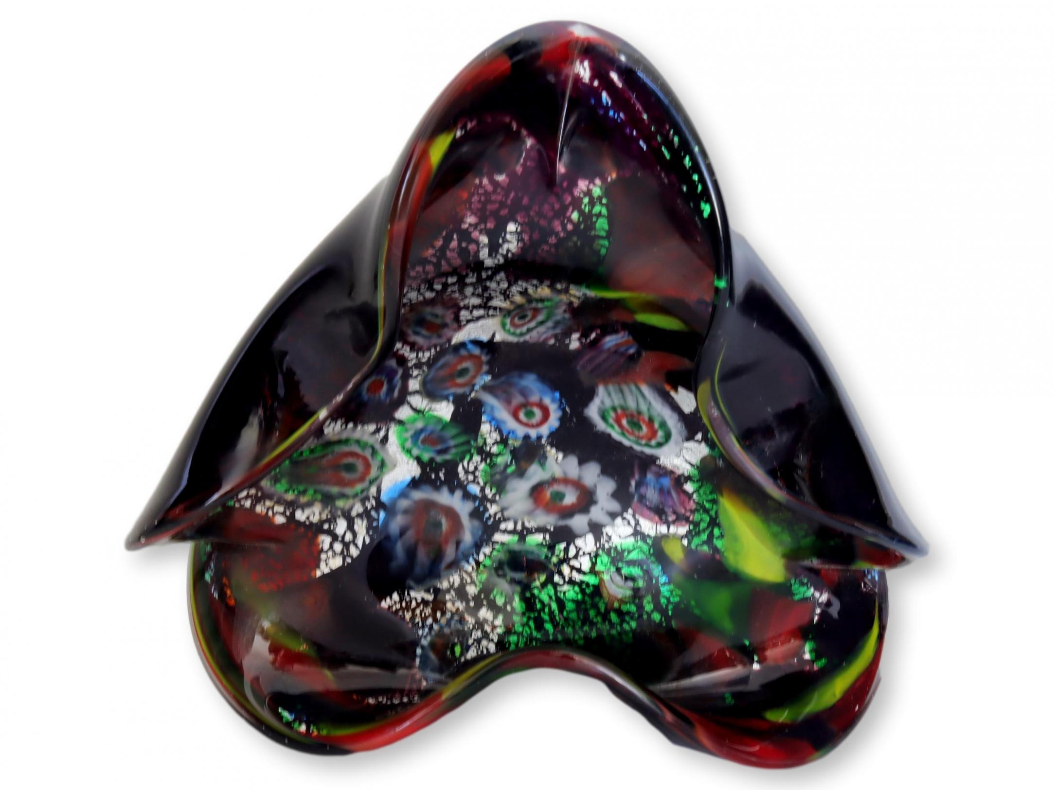 Black Italian Murano glass bowl with multicolor layers of glass and shimmery accents. Great quality and craftsmanship. No maker’s mark.