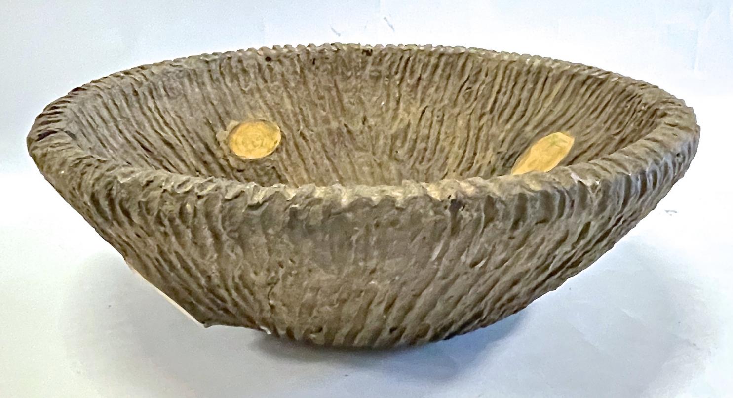 Vintage rustic faux bois style pottery bowl, with branch cuts and textured bark appearance. No maker’s marks.