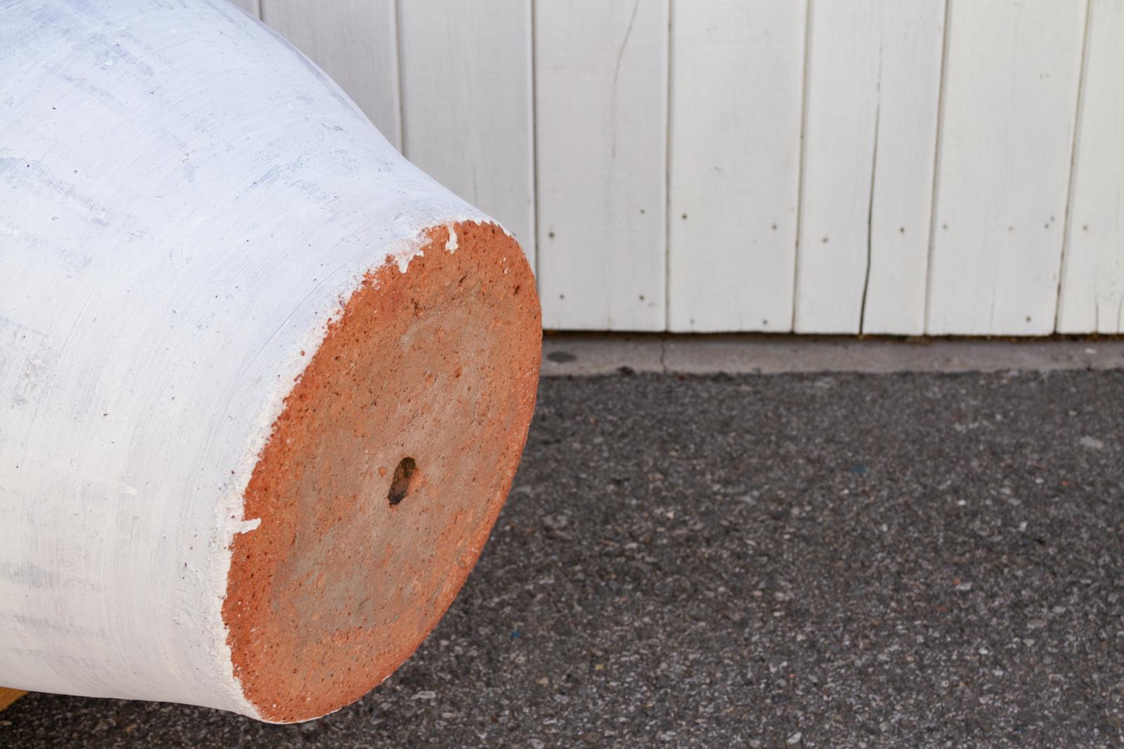 A grand and robust terracotta planter with wide top opening, amphora shape and un-glazed whitewash surface. Ready to be filled with gorgeous plants, this piece is perfect to add touch of nature to any home. This planter has a drainage hole at the bottom of its base.