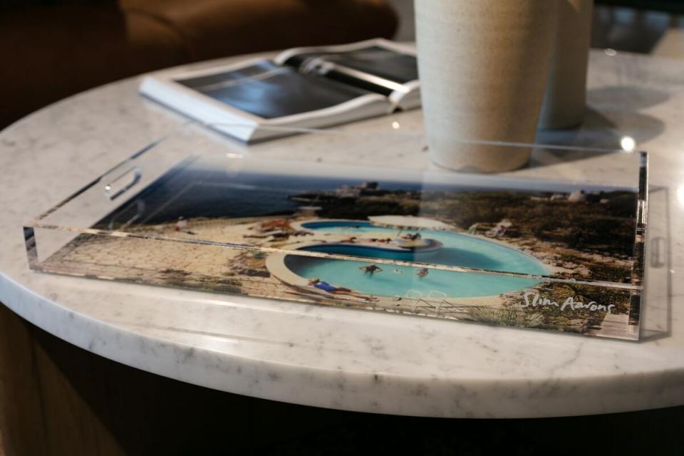 Slim Aarons’s photographs of “attractive people doing attractive things in attractive places” bring a bygone glamour to any room, whether they’re hanging on a wall or, as is the case here, featured on the bottom of an acrylic tray. Aarons took this photo of the pool of hotelier Lamberto Micangeli’s Tuscan villa in 1986. Handcrafted in the USA, the tray has handles for easy carrying and high sides to help prevent objects from falling off.