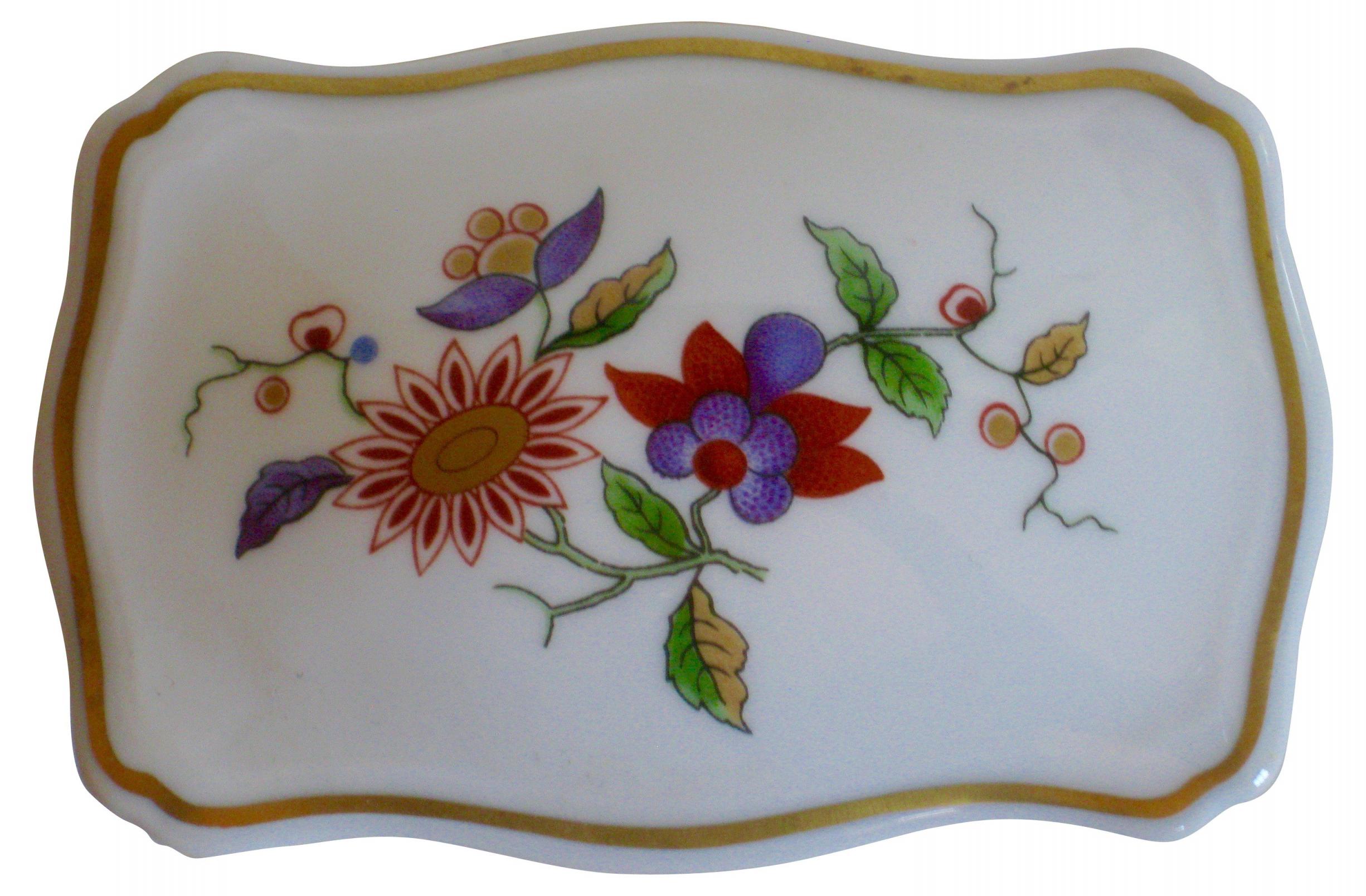 Richard Ginori Italian porcelain lidded jewelry casket decorated with colorful stylized flowers and lovely gilded rims. Marked "Richard Ginori Italy" with the company’s crown mark.