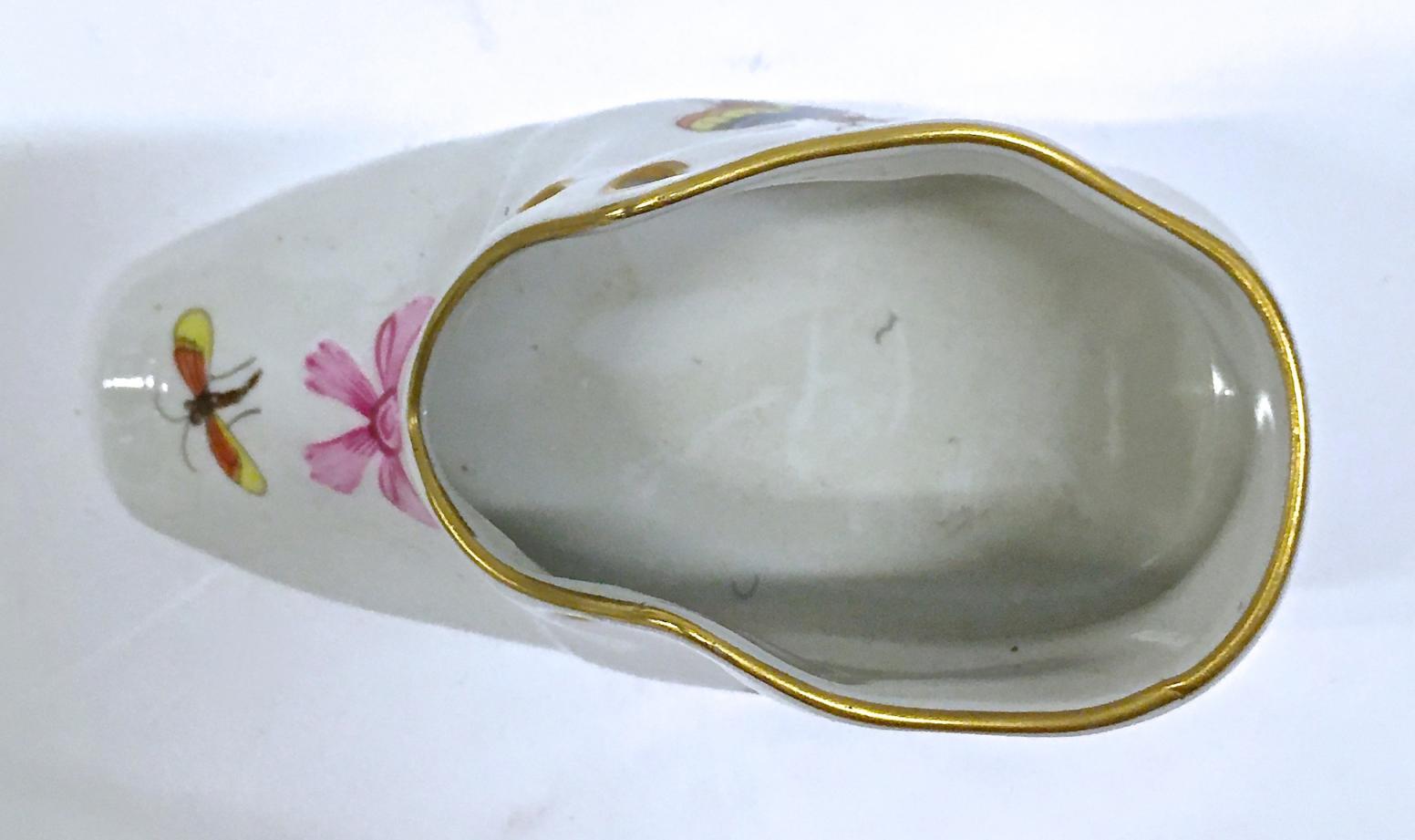 Vintage Herend porcelain wildbird and butterfly illustrations on a shoe style vase. Marked "Herend Hungary, Handpainted,7570 / RO" on the underside.Rothschild pattern….