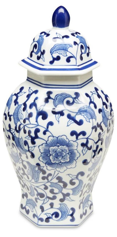 Vases & Jars | Decor One Kings Lane 14″ Floral Lidded Ginger Jar, Blue